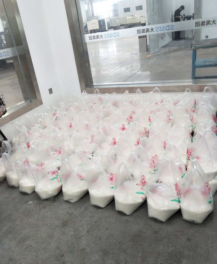 ??????? 隨著梅雨季節的過去、三伏天的到來,一年一度的酷夏即將華麗登場,在這“熱情似火”的日子里,為進一步關心員工的身心健康,傳遞公司對員工的關愛,大禹公司特意為每一位員工送上了十斤白糖,想把最實實在在的“清涼”和問候送給大家,讓大家在這個夏日里 “神清氣爽”。圖為白糖準備、發放場景。
